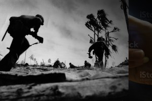 The sky an eerie grayish calm. Color seems to be limited to grays and oranges and the occasional light blue. Mostly gray.